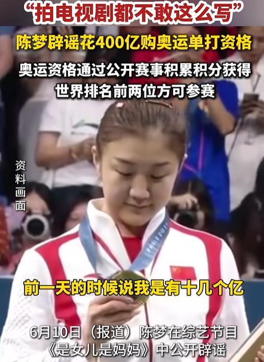 最开始,有传言说陈梦花了十几个亿买单打资格。