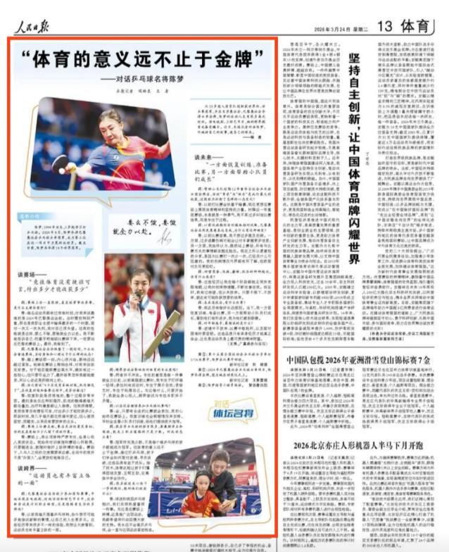 3月24日,人民日报发布了对陈梦的独家专访。