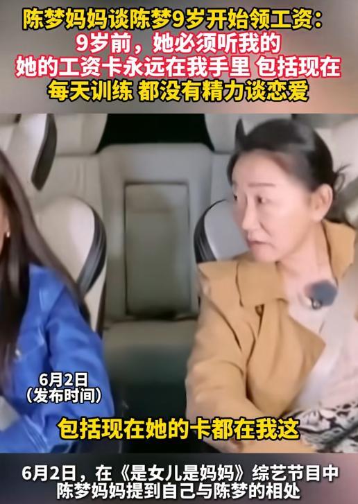 陈梦妈妈就曾在综艺里吐槽过,女儿的工资卡至今仍在她手里放着。